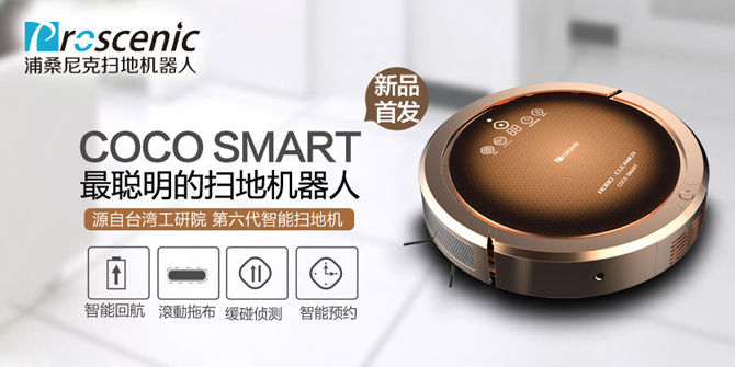 "Proscenic"是由 prosperous 和 scenic 组合而成象征着对未来智能化生活的美好憧憬,1996年由台湾智能化工业协会创办,Proscenic扫地机器人主要出口欧美,目前保持日本市场销量第一。2014年8月COCO SMART新款上市,采用台湾工研院第六代智能清扫技术,独有仿声超声波侦测 + iPHBC人工智能系统 + 浮动纤维滚刷 + 原装Nidec无刷电机超强吸力!