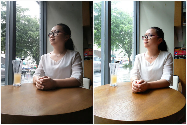 【顺光】顺光因为光线充足,对相机的考验是最小的。也是自拍效果最出色的时候,左边的一加3如果单独看的话,其实效果已经很不错了。只是vivo X7拍出来的效果更加红润,皮肤更有光泽,更具吸引力,妹子也更喜欢。vivo X7的自拍美颜不是简单的美白与磨皮,还增加了皮肤的红润和光泽,显得更加好看。