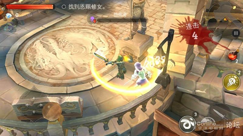 下面来玩玩两个手机的大型游戏,先玩容量达到1.3GB 的《地牢猎手5 》,一款很爽快的RPG 游戏,一直打下去都有绚丽的战斗画面。爽玩了几关,一直都是畅快淋漓的,没有出现卡顿感。游戏用截图说话不算,用视频才能体验到真实效果: