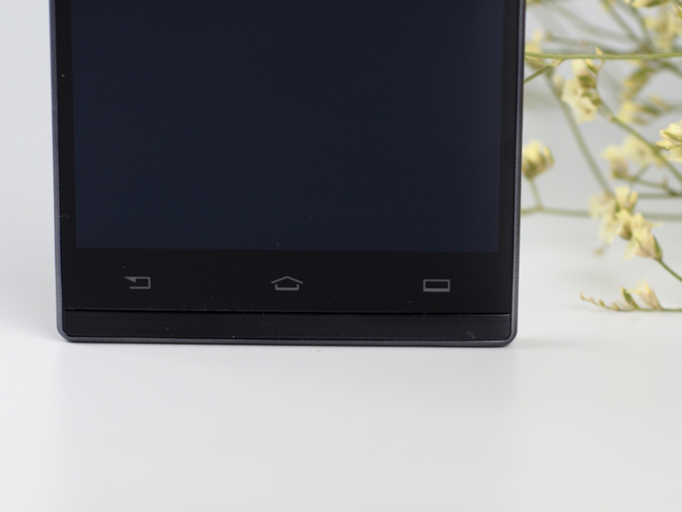 正面下方是三枚触摸键,从左至右分别为返回、主页和菜单。