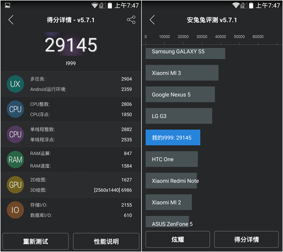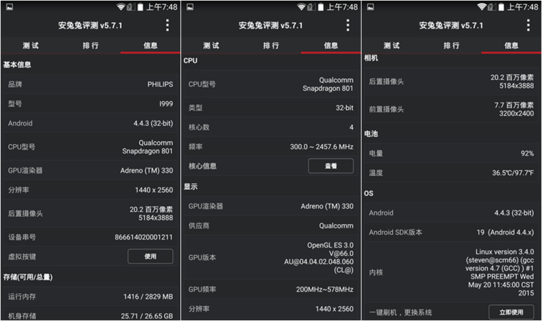 跑分仅供参考,要知道高通骁龙801可是经历过长期考验的的芯片方案,杰智I999跑分仅有29145,明显是飞利浦没针对安兔兔评测进行优化,这点我还是蛮佩服飞利浦的,跑分不重要,重要的是系统流畅。老罗不也是这样干的吗,你不是跑分高么?我偏偏让锤子手机跑分低,你奈我何?!
