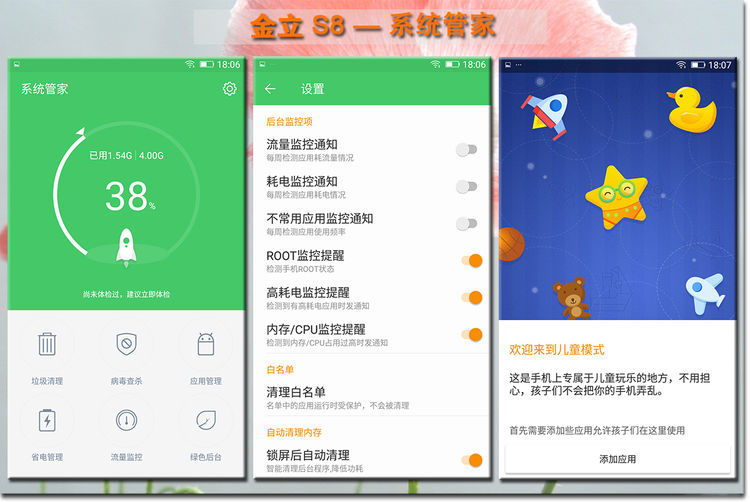 相信便捷按键对于很多人来说是必需且很重要,金立S8支持悬浮触点功能,你可以将常用的应用添加在其中,无需寻找,你便能在桌面状态下,轻松实现对该应用程序的操作。此外,它还支持语音功能,通过人机对话,实现如打电话给某人等等简单的操作,有人说科技的发达导致了人的惰性,我觉得是人的惰性促进了科技的发展。