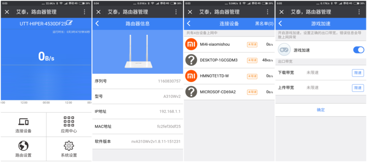 初始设定完成之后,实际上能够满足90%以上用户的需求了,连接互联网、连接wifi,查看接入设备数量及具体信息等等,而且可以非常便捷地通过点击相应设备名称完成各种权限的设置。这时,如果碰到蹭网的,小样,直接拉黑他就OK了。