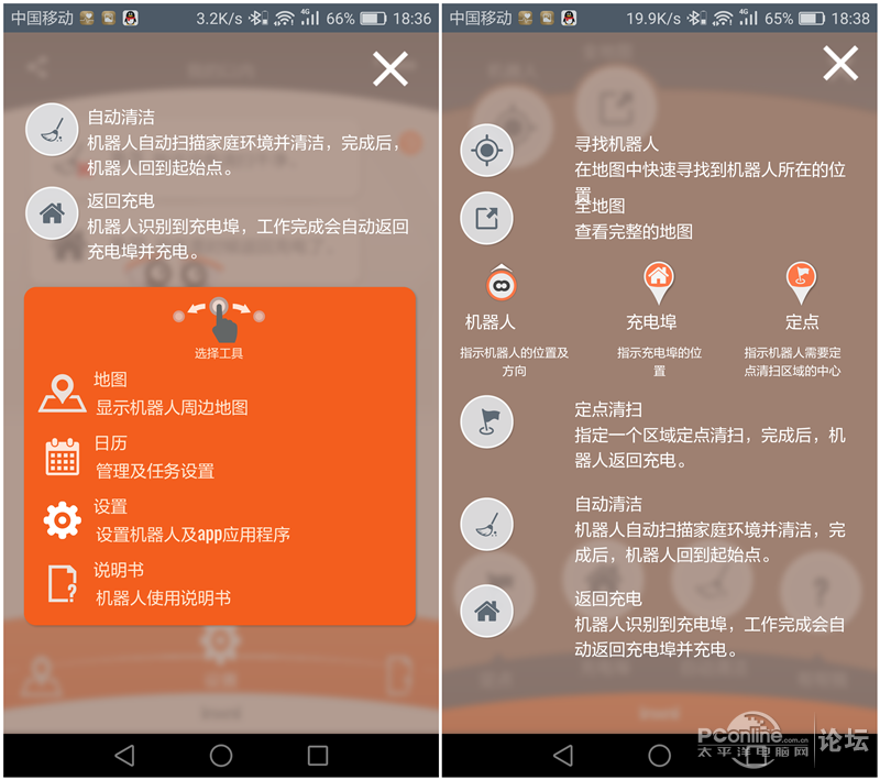从这两个功能帮助页面可以了解到,以内导航扫地机器人有自动清洁、定点清洁、自动返回等等功能,而且还能自动扫描地图呢,看起来功能好强大。