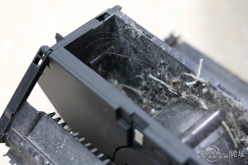另外滤网上的积尘也相当可观,看来滤网是需要经常清理的,可这个滤网的设计是不能水洗的,还是有点郁闷。