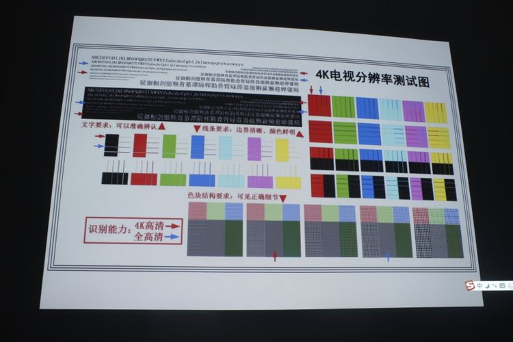 NEC U321H 在红色箭头的文字的显示清晰,肉眼直接观看已经很清晰了,侧面证明清晰度还是不错的。英文部分的字母在红色箭头处很清晰,按照图片描述,清晰看见蓝色箭头的是全高清,清晰看见红色箭头的是4K高清,NEC U321H 清晰可见的部位是红色区域。可以看出蓝色与红色箭头,证明解析力还是非常不错的。