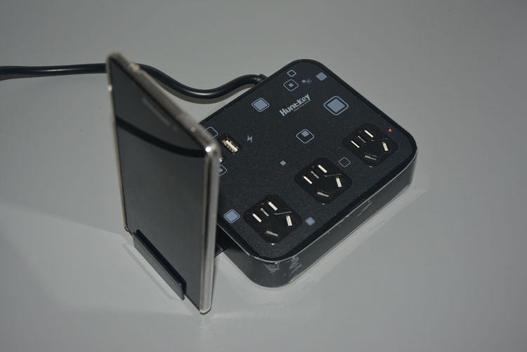 在插板的附件中,还赠送了一个小小的智能设备支架,这款支架不仅仅可以配合插座作为桌面充电站使用,而且还可以单独作为手机娱乐支架使用,可谓一物两用。