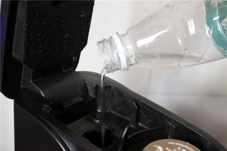 科贝尔冲泡单杯饮品的时候它的步骤非常简单,胶囊放进去、加水,然后盖上盖子,按下开关就可以静等饮品机自动冲泡了。这里面其实需要注意的东西不多,水可以是饮用纯净水、也可以是烧开的温水,是否加满都由用户自身衡量。340ML的水箱容量应该不单单只有一杯的量吧?
