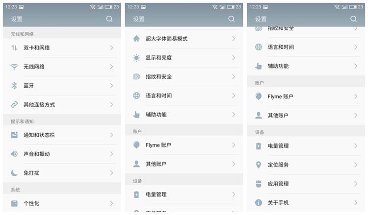 Flyme5的设置跟其他手机OS的设置大致相同,在这里我就不一一举例说明了,我就挑些有特色的地方重点讲。Flyme5里的辅助功能是必须要讲的重点,里面有好多实用的功能,在我看来很人性化。