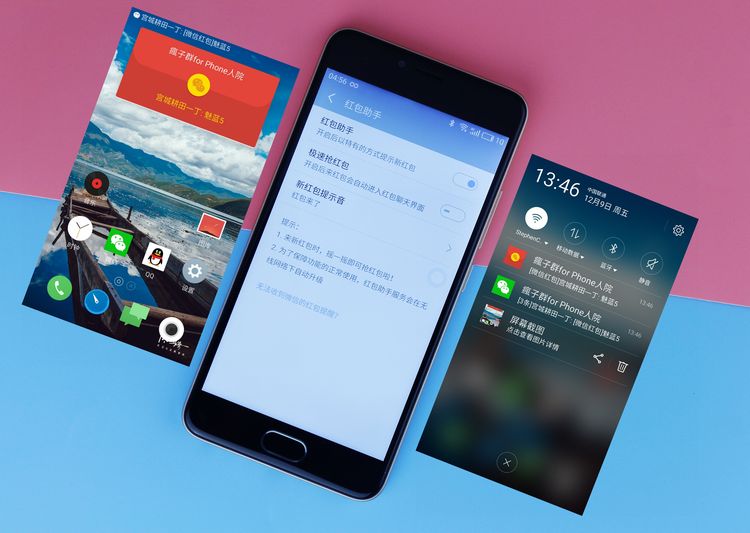 这个红包助手与其他红包外挂不一样,它只是给你做一个提醒,而不会帮你抢红包,抢红包的这一历史性的时刻还是需要你亲自点击抢红包。而且发现这个红包助手如果你有一个红包提醒,你没有抢,然后接下来再有红包提醒的时候,就不会像左图一样弹出桌面,而是像右图一样在通知栏显示有红包,就不会再出现在桌面了。希望在以后的Flyme版本里可以适当的优化一下这个功能。