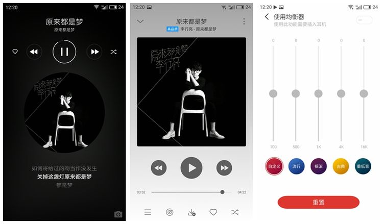 Flyme5的音乐播放器好评,毕竟如今的音乐大多都要购买下载,或者包月什么的,而Flyme的音乐库里可供下载的歌曲资源还是很多的,而且很重要的一点就是用户是可以免费下载的。操作界面也是与Flyme5统一,操作也顺手,插上耳机后还可以调节均衡器,对于那些懂行的耳机发烧友来说,可能调节那个均衡器会是一大乐事。(当然作为百元机,魅蓝5的外放也仅仅是能听,想要非常高的音质那是不科学的)