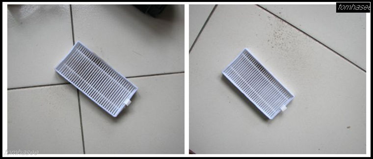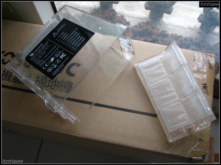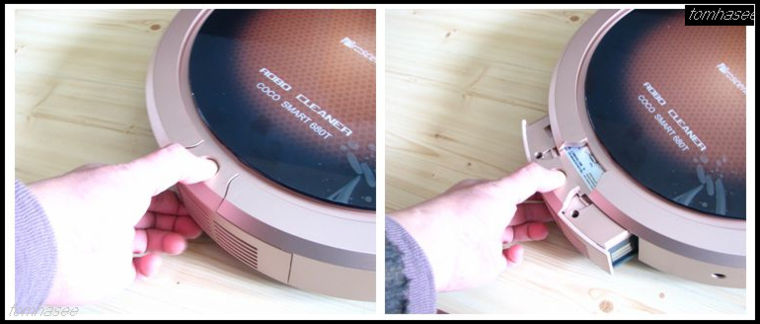 在2个轮子之间就是透明的灰尘收集盒,0.8L,号称是全网最大容量。对于这个数字没有什么概念,后面通过实际体验看是否够用。