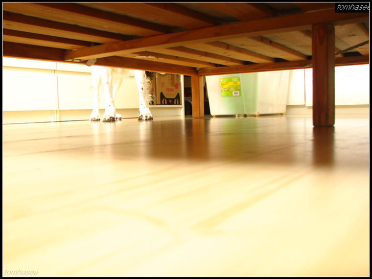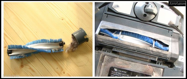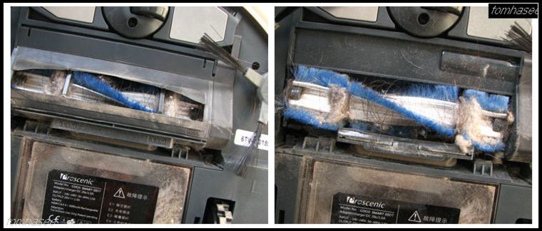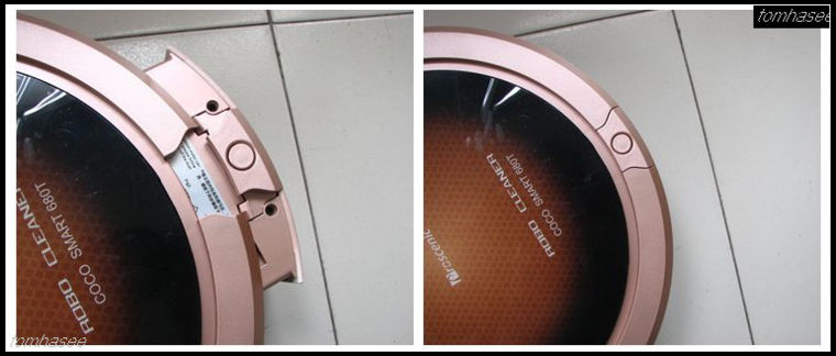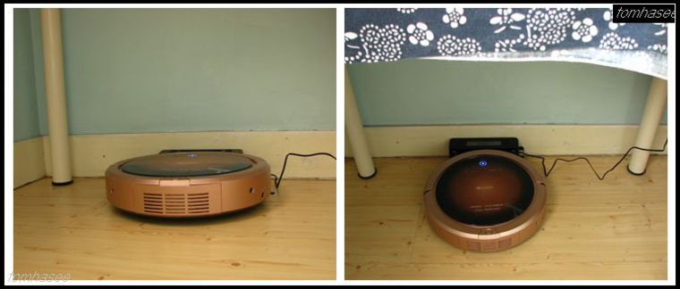 按动遥控器上的开始按钮,COCO 居然真的自己动了起来,2个刷子旋转,自己找路开始干活了。一眨眼,自己就钻到了沙发下面。通风道后面可见UV灯紫外线照射的光,蛮好看的(但是眼睛不要直接对着看哦!)。