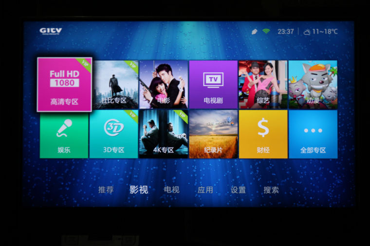至于大家比较关心的安装软件应用方便,因为之前广电总局的禁令,所以厂家们也做了小小的限制,TCL H9700对存在U盘里面的apk程序点击安装的时候是没有安装按钮弹出的,必须要在电视上打开TCL自己开发的电视卫士,在恢复的选项里才能正确安装。经过测试,主流的软件经过这个稍微绕圈的方法安装之后,运行操作都没有问题,最大的问题是经过广电禁令之后,几乎大部分视频app的TV专用版都下架不能用了.......我们安装的只能是移动终端的版本,打开之后拉伸得非常奇怪。