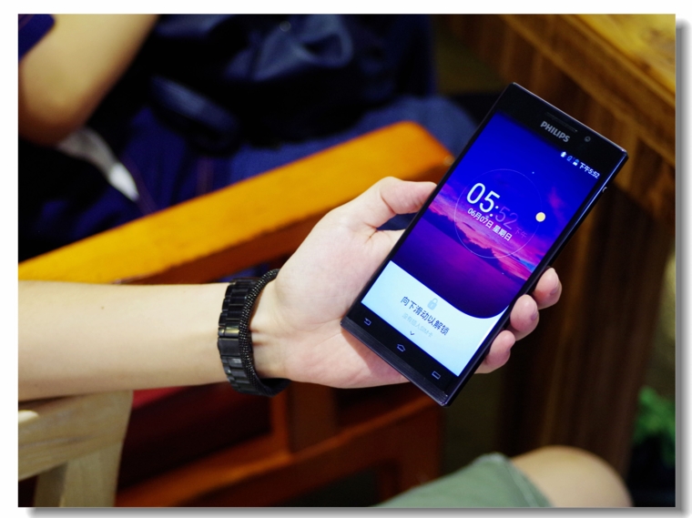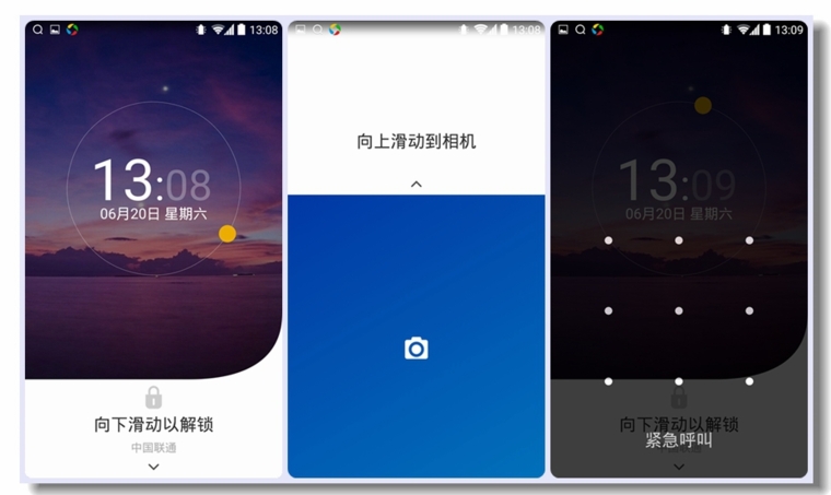 ▼I999装载了Android 4.4.3操作系统,在高通骁龙801以及3GB RAM的支持下,整个系统的体验非常流畅。锁屏界面时钟的小黄点为秒针,滴答滴答不停地在走动。向下滑动可以解锁屏幕,向上滑动可以快速进入相机进行拍照。