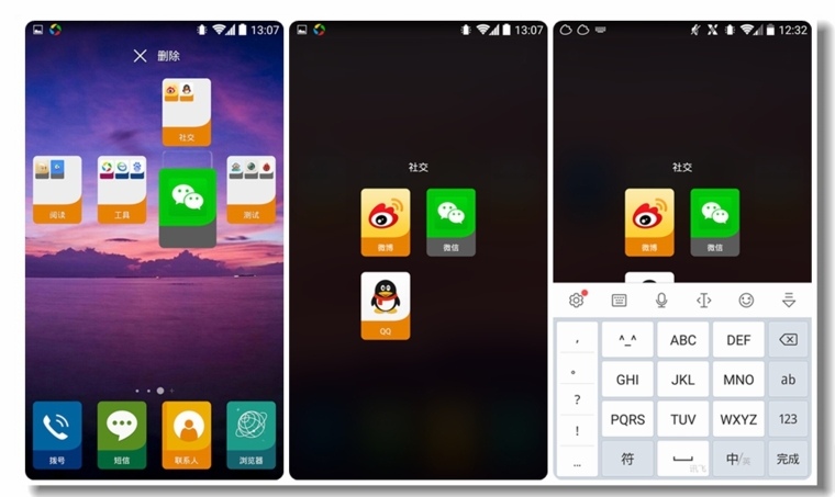 ▼因为系统采用了一级菜单,所以用户可以自定义文件夹,拖拉图标时还有动画效果,整体体验还算不错。