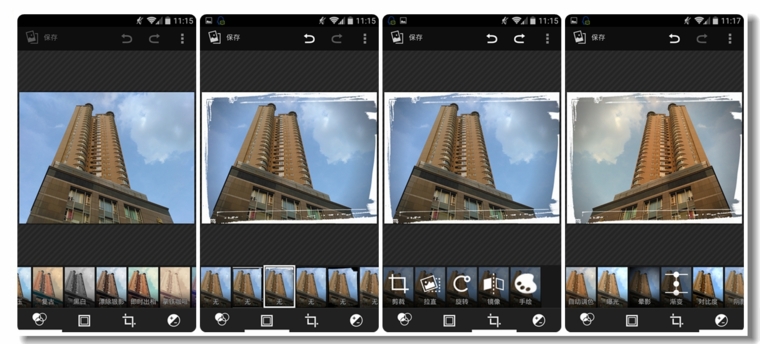 ▼不得不提的是,虽然自带的相机功能比较简单,但是系统图库弥补了很多不足,图库提供了对照片许许多多的后期选项,包括滤镜选择、边框添加、照片裁剪以及参数调整。