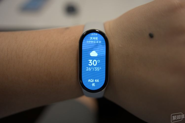 小米手环10的屏幕采用了四边等宽2mm的设计,对比前代明显收窄黑边,尤其是彻底去除了9代的“大下巴”,整体观感更和谐。峰值亮度高达1500nits,实测在烈日下依旧清晰可见,表盘与屏幕浑然一体,视觉质感大幅提升。
