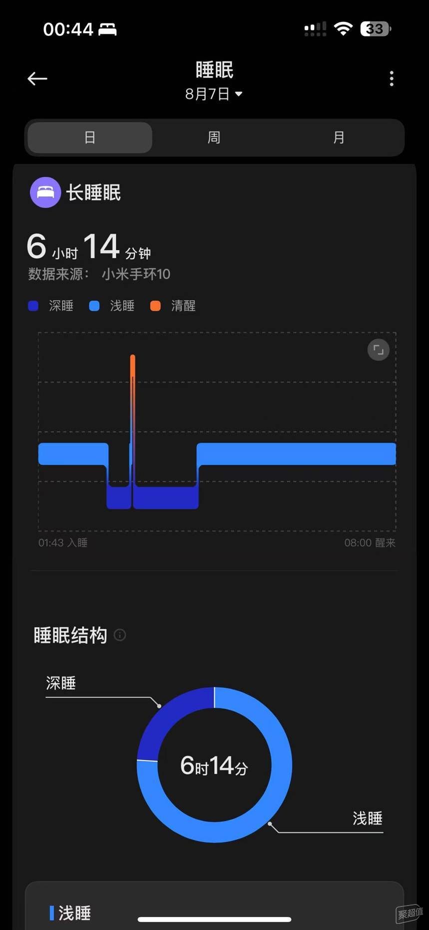 通过小米运动健康app能够获取更多睡眠方面的数据及建议。如睡眠结构、睡眠效率、睡眠解读等。附带21天睡眠改善计划,通过任务列表矫正睡眠习惯。