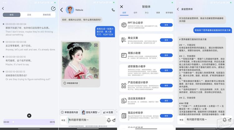 除了实时翻译以外,这个APP还可以将录制的语音转成会议纪要,这个对我来说挺方便的,有时候单位开会或者和客户开会,都可以快速记录,不像以前需要做录音,然后回去听,省很多事。此外APP里还有豆包和DeepSeekR1两大AI模型,可以智能问答,AI生图,还有很多不同的智能体可以帮忙创作或答疑,功能非常强大。