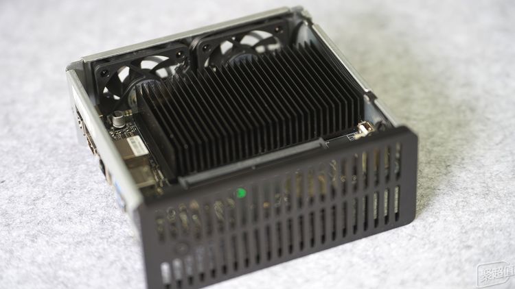 铁威马F4 SSD在CPU处还增加了一个非常大的散热鳍片,内部一张板设计的确实非常简约,要不是为了散热保证机器的正常运行,F4 SSD的尺寸还能再进一步缩小。