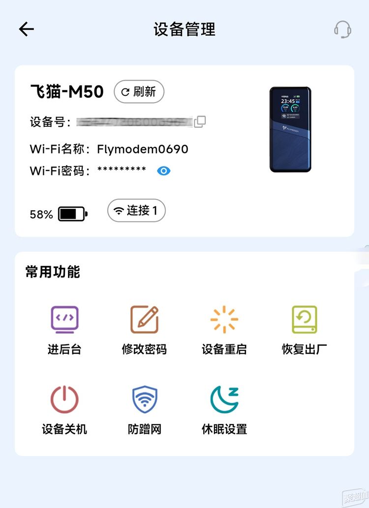飞猫M50配套的APP功能丰富,可对设备进行一些基本的设置,如修改 WiFi 密码、切换频段等,操作简单便捷,进一步提升了用户的使用体验。