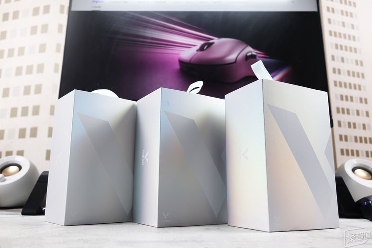 VT3系列的VT3,和VT3s系列的VT3、VT3s,整体包装形式保持一致,正面几乎无过多产品参数或文字描述,仅通过品牌标识和配色传递产品属性,镭射银色V字LOGO为视觉焦点,整体设计极简且富有未来感,符合电竞外设的科技定位。