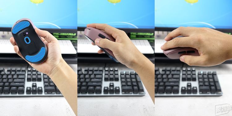 实测三款鼠标的重量均只有五十多克,非常轻便的设计了。