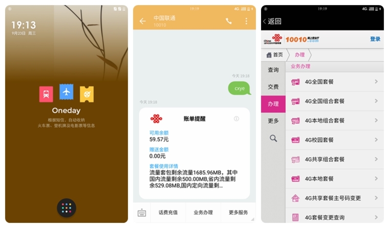 氢视窗的功能不仅于壁纸的美观设计,还具有更智能的功能性。单触氢视窗即可打开信息类聚合中心,当手机收到火车票、登机牌和电影票等信息时,会以一种卡片的方式进行显示,更为直观简洁。相同的,一些服务短信也采用了卡片的显示形式,省去了繁琐的语句内容,一目了然,而且下方的输入框直接转变成服务按钮,直接按需选择进入相应界面,不用再去回复代码或者打开浏览器进入网址。氢视窗的功能性给笔者一种智能的体验感,相信随着后期的开发,这个功能性会有更大的拓展空间。