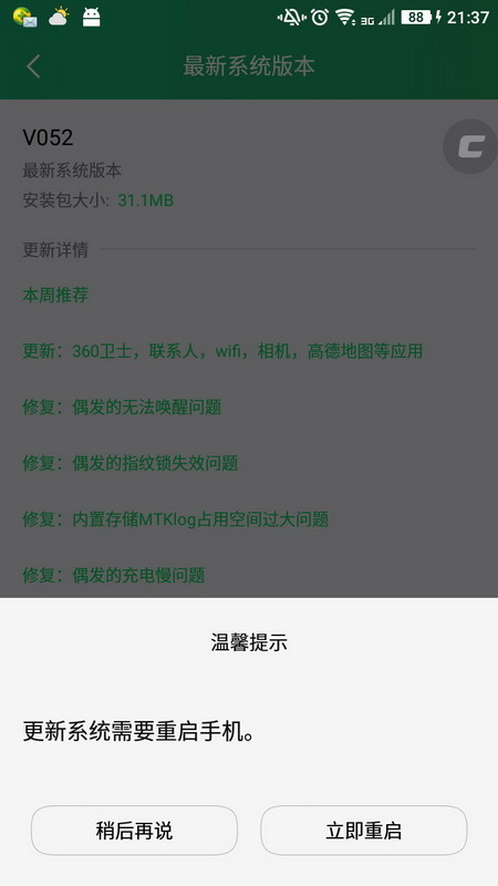 ▼要说到 大神Note3的自动系统更新,就有些烦了,它是采用增量升级包,所以隔不了二、三天就会出现升级提示。