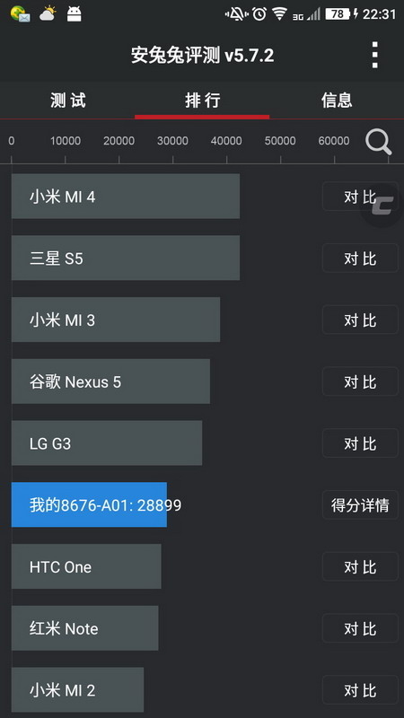 ▼大神 Note3 的安兔兔得分更不理想,没有突破3万分。不过现在对于手机,性能已不再是最主要的关注点了, 大神 Note3应付主流的APP应用及娱乐游戏,都能流畅搞定。