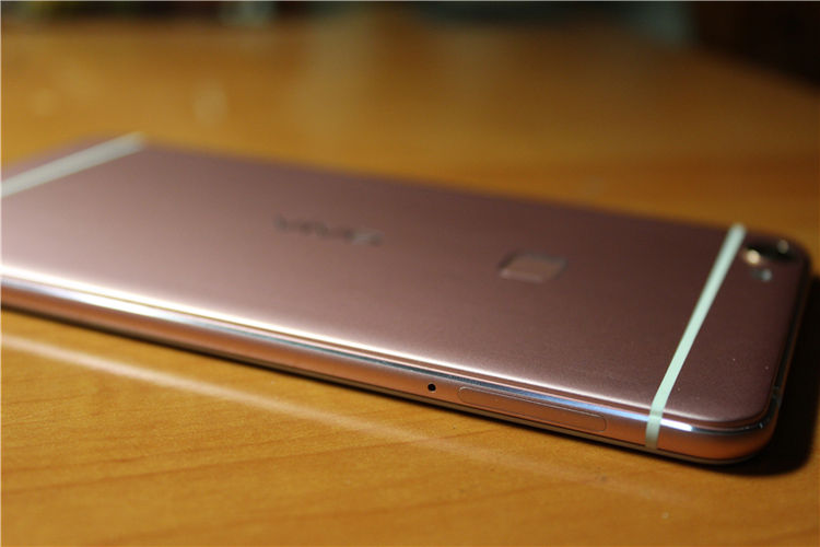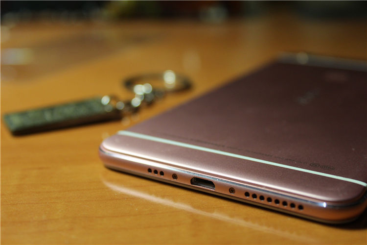 2015年是三段式全金属机身的一个爆发节点,就连千元机也有很多采用了三段式金属设计,而vivo则是较早采用金属机身的一个国产厂商了,这次的X6Plus也继承了以往的设计语言,有着浓浓的vivo外观,同时采用了比较流行的玫瑰金色,在不同的光线下有着非常不同的金属光泽,相比起传统的金属颜色,玫瑰金则更加柔和,另外其他国产手机的金属化机身大多都是上下为聚碳酸酯,中间为金属材质,但X6Plus则更加彻底,后盖采用了一整块金属,同时为了保证信号上下两测进行了注塑,这样视觉上会让人觉得更加统一,同时“海带条”与金属后盖之间的衔接非常平整,做工很精细。指纹识别也放在了背面,单手持握很自然就能够到。