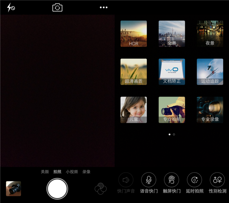首先我们来看一下它的拍照界面,其整体风格跟iPhone有几分相似,右下角是各种滤镜,右上角则有很多功能,只不过上端和下端的功能有些重复,操作逻辑有些混乱,指纹识别在这里还可以当作快门键,想要拍照只需要轻触就行,方便了自拍。在拍摄过程中,手机的快门速度和储存速度也相当快,有点指哪打哪的意思,丝毫不拖泥带水,拍照过程体验也非常好。