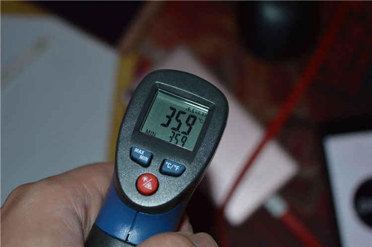 充电时的后壳有轻微热度,温度在35.9度左右,发热点在摄像头附近,和快充的大功率有关,游戏中的温度最高在39度左右,没有拍图片,不过这个温度已经不低了。
